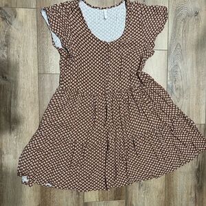 Charming floral dress by Rylee + Cru. Features a brown base with white flowers. Ideal for everyday wear.