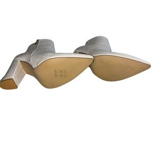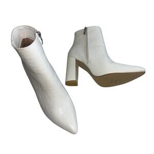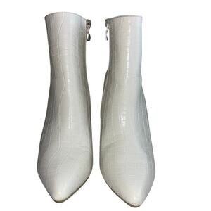 NWOT White Crocodile Pattern Faux Leather High Heel Pointed Toe Ankle Boots Side Zipper with Silver Tone Hardware EU 39 = US 8.5