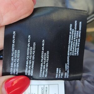 Measures front length 31", arm pit to arm pit 25.5", sleeve 30.5", back length 34".