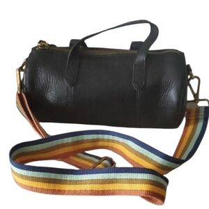 Madewell Black Crossbody Bag with Textured Leather and Detachable Rainbow Strap