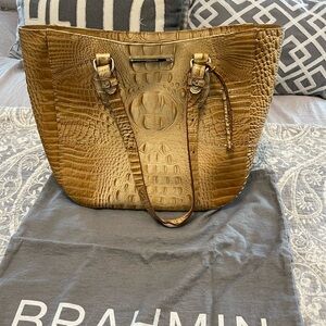 Brahmin Lena Purse crocodile embossed leather satchel tan beige brown