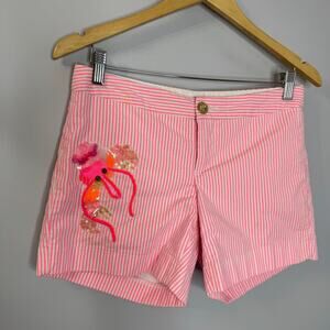 Lilly Pulitzer Pink Striped Callahan Party Sequin Shorts Pink Seersucker Sz 2