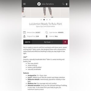 Lululemon Ready To Rulu Pant Size 10. Color is Space Dye Camo Black White. In excellent condition