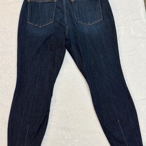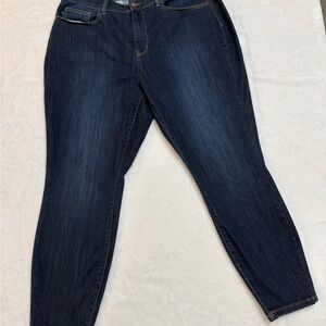 Judy Blue women’s skinny jeans size 20W. High-rise stretch denim in a dark wash with soft feel and flattering fit. Super comfy everyday style! There is a tiny white spot on the keg, not sure if thats the denim or bleach but it’s very tiny.