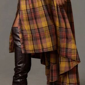 This stylish plaid dress features a high-low hem and a relaxed fit, perfect for any occasion. The blend of warm colors adds a touch of elegance to your wardrobe.great condition! size XSP