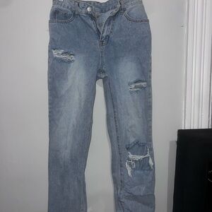 Elevate your casual style with these classic blue distressed jeans. Perfect for a laid-back look.