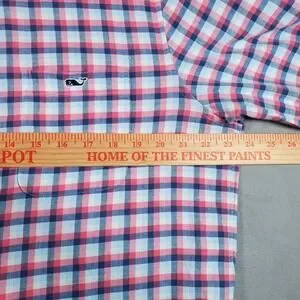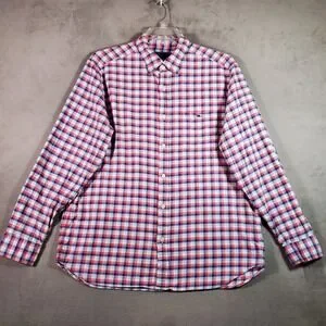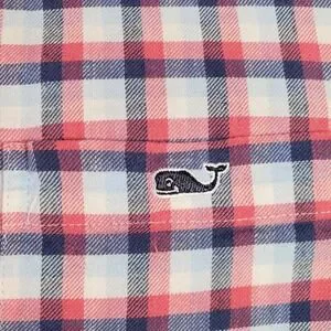 Vineyard Vines Shirt Mens L Pink White Blue Plaid Flannel Classic Fit Preppy