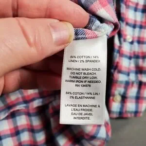 Vineyard Vines Mens L Pink Blue White Plaid Classic Fit Button Down Shirt Cotton Linen Blend