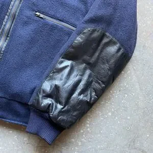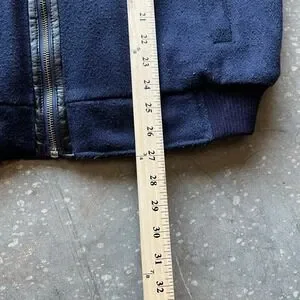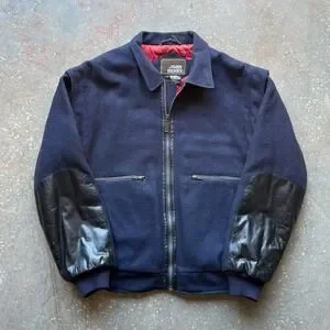 VTG 70s 80s John Henry Navy Wool Leather Trim Bomber Jacket Men's Size L Quilted
