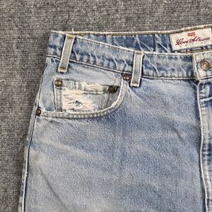 This Levi's 540 Relaxed Fit in light stone wash is a versatile addition to your closet. Designed for everyday wear, it offers a comfortable relaxed silhouette with a measured Size 36x28 (tag size 38x30). This piece is in good vintage condition, showcasing authentic lived-in distressing including moderate fraying at the pocket scoops and back hems which enhances its Heritage appeal. The rare bronze brown tab from May 1995 remains in excellent condition, appearing very well-maintained for an archival piece.