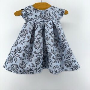 Bonnie Baby Tapestry Silver and Blue Floral Baby Dress with Bow