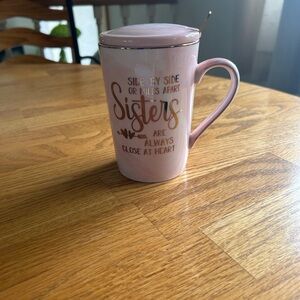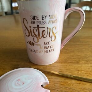 Sisters Ceramic Mug with Lid and Spoon