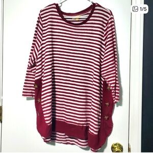 Mesh+Lace Size 2X Womens Striped Red and White Sweater with Button Accents.