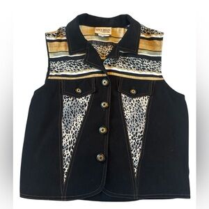 Nancy Bolen City Girl Leopard Panel Western Vest Y2K Sleeveless Size 6