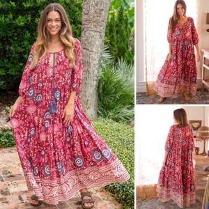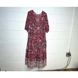 < Natural Life Red Floral Tiered Boho Dress >
