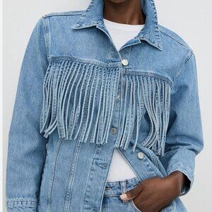 Very high quality fringe denim jacket with a slightly oversize, boxy fit. Perfect for cowgirl themed parties/bachs or country concerts - warmer than it looks and elevates any Western style outfit! Only worn once, in EXCELLENT condition.