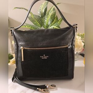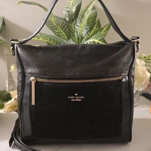 Elevate your style with this elegant Kate Spade black leather shoulder bag. Perfect for any occasion, it features a sleek design and a spacious interior.