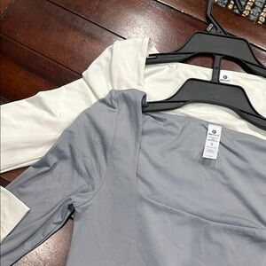 90 Degree By Reflex Gray and Cream Crop Tops