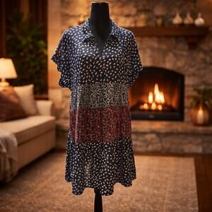 Umgee + Dress Womens 1X Tiered Vcut Neckline Boho Cottagecore