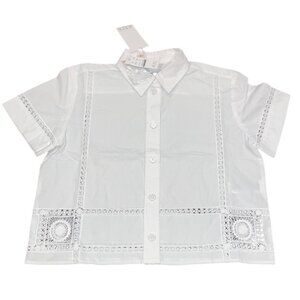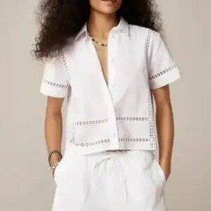 NWT J.Crew Women's Sz 0 White Gamine Eyelet-Trim Shirt