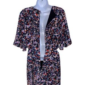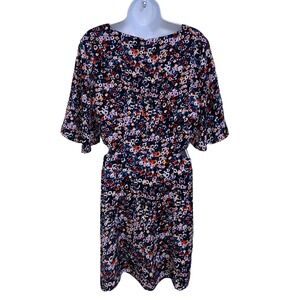 French Connection Floral Print Lined Dress Cutout Waist Short Sleeve Size Large