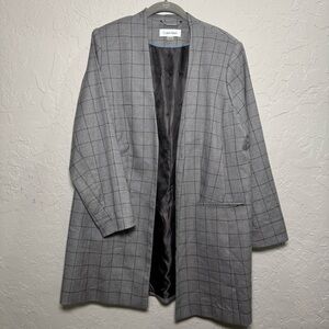 Calvin Klein Women's Collarless Open Front Checkered Blazer 14W