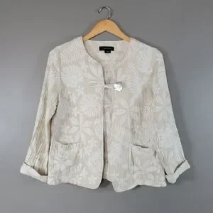 Tahari Linen Blend Tropical Print Blazer Size M