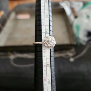 This stunning silver tone cluster ring adds a touch of elegance to any outfit. Perfect for special occasions or everyday wear. Size 7.5