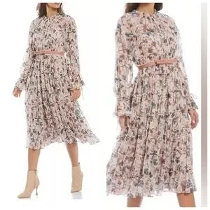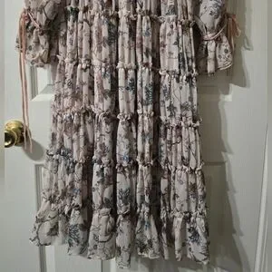 NWT Nicola Bathie/Antonio Melani Claire Floral Chiffon Tiered Ruffle Midi Dress.