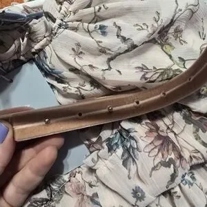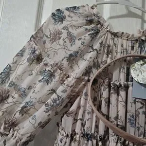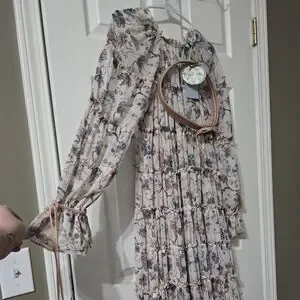 NWT Nicola Bathie x Antonio Melani Claire Floral Chiffon Tiered Ruffle Midi Dress. Women's size 2 (runs big!). See last picture - the loop for the belt on the left side came unstitched.