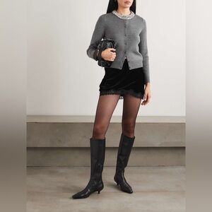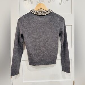 A classic—with added drama. Spun from extra-fine grey merino wool, the Daro cardigan features a shrunken, slim fit and a crystal-embellished collar for a high-shine finish. Tonal snap buttons and ribbed trims complete the look. Pair with denim to elevate the everyday, or layer over a slip after dark.