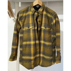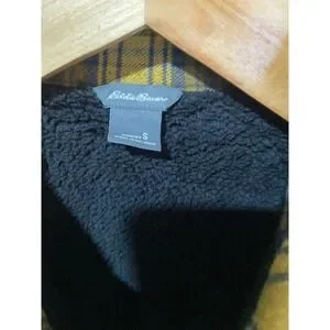 Eddie Bauer Men's Flannel Fleece Lined Shirt Jacket Yellow Plaid Outerwear Sz S
