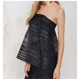 Such a wonderful piece from CAMEO! This black bustier style top features a sheer swing top overlay with bust and side boning and gripper tape for a perfect fit. The semi-sheer striped organza overlay has an A-line silhouette. Back hook/eye closure. Pair it with a high-waisted pencil skirt or leather skinnies -- either way you'll look fabuous! Size Small.