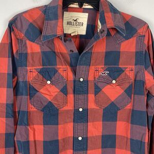 Hollister Shirt Mens Sz S Red Plaid Long Sleeve Button Country Western Rodeo