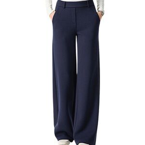 OGL FuzzLuxe Soft Cozy Wool Blend Straight Leg Pull On Pants In Navy Blue.