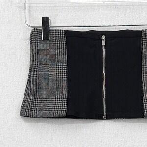 TIBI Glen Plaid Wool Corset Belt Womens 4 Gray Black Sheer Zipper Accessory
