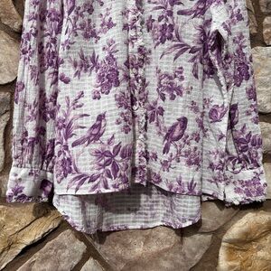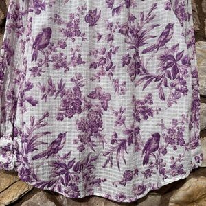 Sundance Bird Floral Button Down Top Gauze Purple White Size Large Long Sleeve