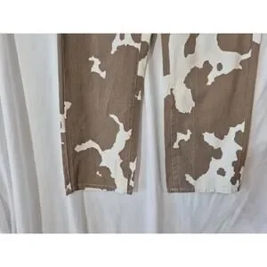 12th Tribe Womens Designer Midland Cow Print Wide Leg Jeans XS