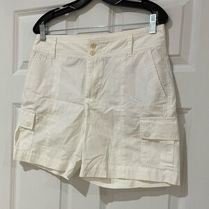 Preppy white classic cargo shorts by Ralph Lauren. Easily dressed up or down. Add kitten heels and a blazer for a great professional look. Throw on a sweater over a tee and make these the perfect weekend shorts.