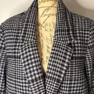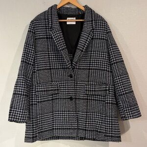 Old Navy oversized relaxed blazer jacket coat wool blend black plaid XL
