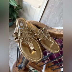 CIRCUS by Sam Edelman, ladies gold flip-flop sandal size 8 very good condition great summer sandal, super cute with shorts and skirts. I must have in your closet for the summer.