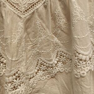 Chic white blouse with intricate lace details. Perfect for elegant occasions.