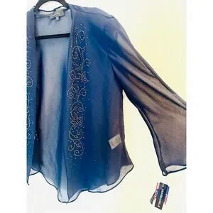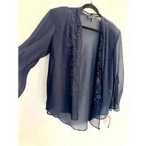 NWT R&M Richards Chiffon Beaded Jacket, midnight blue Size 18