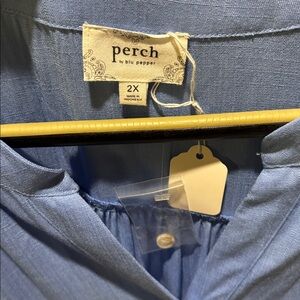 Perch by Blu Pepper Deep Sky Blue Top. V-neck. Button front. Short sleeve with cuffed arm. Loose fitting. Women’s size 2X. NWT. Color same as first picture.