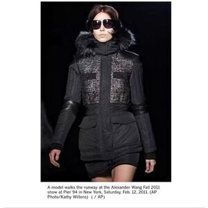 Alexander Wang Twee Fox Fur Leather Wool Quilted Puffer Coat from the Fall/Winter 2011 Runway Collection.