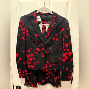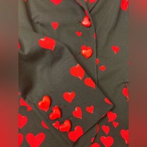 Vintage Moschino Cheap and Chic Black Jacket & Skirt with Red Heart Pattern
