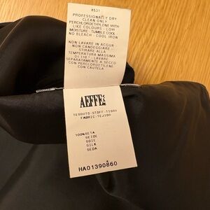 The matching mini skirt is a US 8 and 100% silk with subtle pleats and a side hidden zipper. The skirt has full lining - rayon and acetate