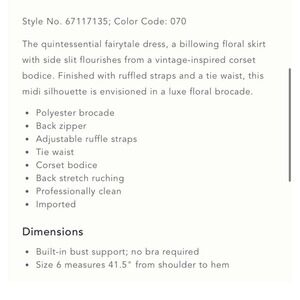 $525 Anthropologie V. Chapman Vera Ruffle Corset Slit Gold Dress Floral 10 Midi