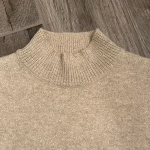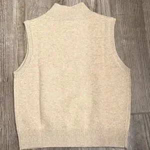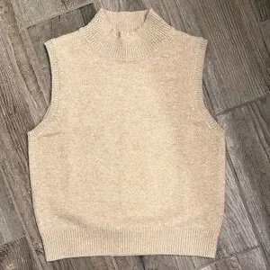 Elevate your wardrobe with this elegant tan turtleneck sweater vest. Perfect for layering and adding sophistication to any outfit.