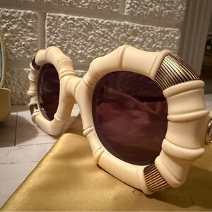 RARE Gucci Bamboo Bone Sunglasses in Ivory with Case & Dustbag